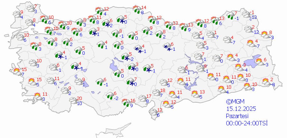 Akdeniz dışında sıcaklıklar 10-15 derecenin altına iniyor, doğu ve iç kesimlerde 0-8 derece civarı değerler ölçülecek.