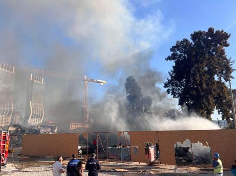 Şantiye görevlilerinin müdahalesi yetersiz kalınca alevler çevredeki ağaçlara da sıçradı. Olay yerine gelen itfaiye ekipleri, yangını söndürmek için çalışma başlattı.