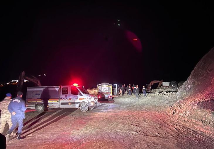 Toprak kayması devam eden bölgede, ekiplerin arama ve kurtarma çalışması devam ediyor.
